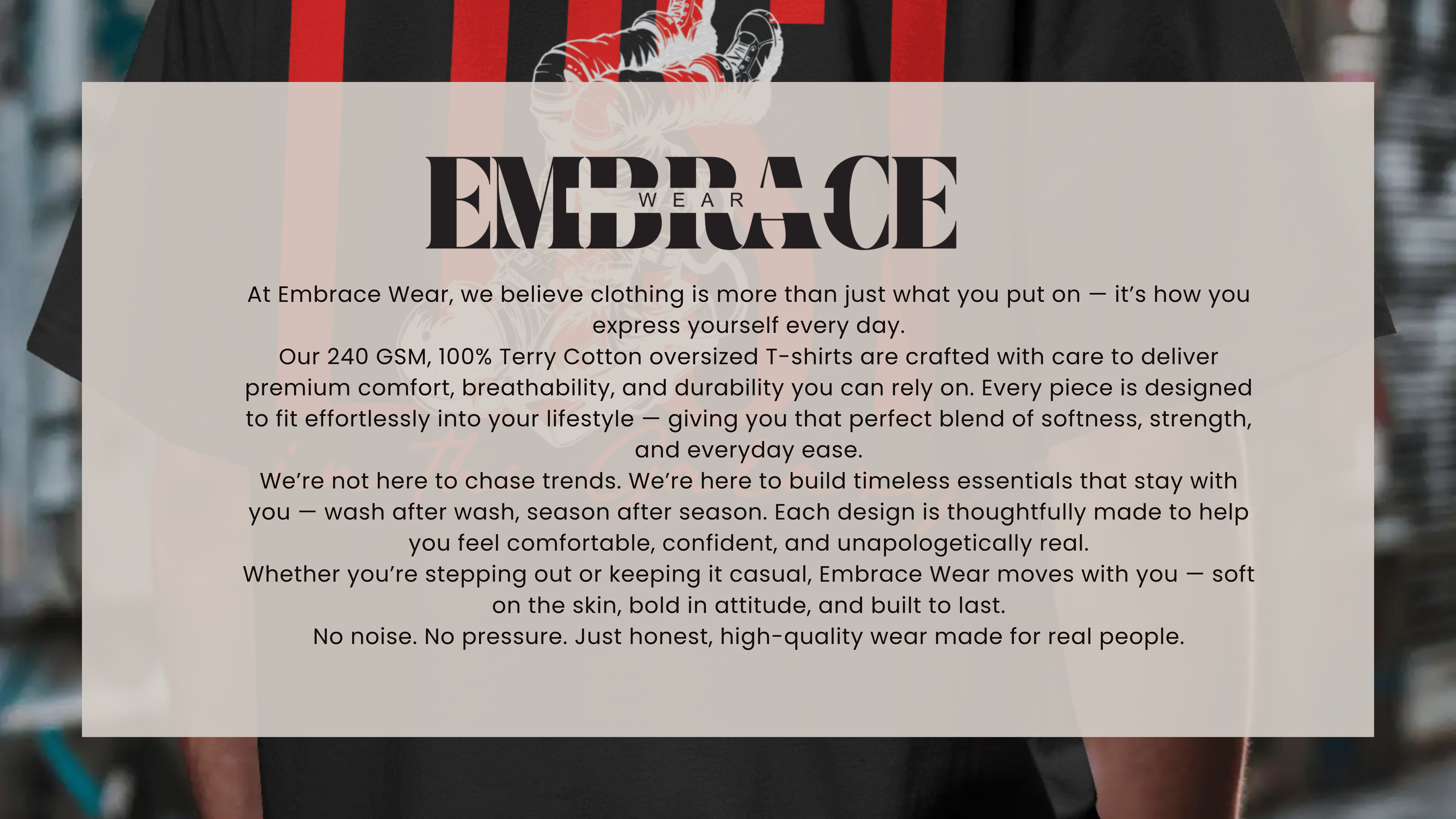 I love how I can wear my Embrace Wear tee anywhere — gym, coffee runs, or shoots. It’s my go-to because it just feels right every time.
